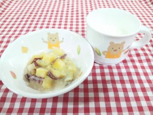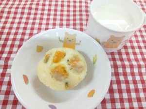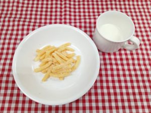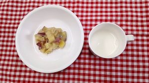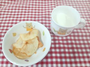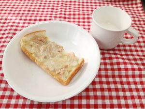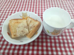 *おやつ ツナマヨトースト 牛乳*
