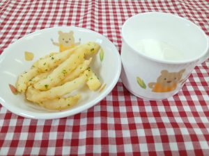 *おやつ フレンチフライドポテト 牛乳*