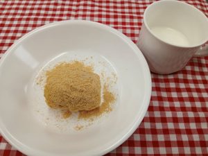 *おやつ きなこおはぎ 牛乳*