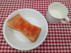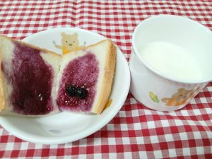*おやつ ブルーベリージャムパン 牛乳*