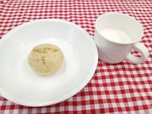 *おやつ きな粉バナナ蒸しパン 牛乳*