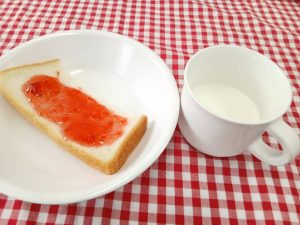 *おやつ いちごジャムパン 牛乳*