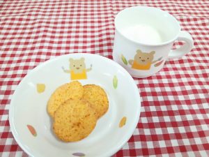 *おやつ 人参クッキー 牛乳*
